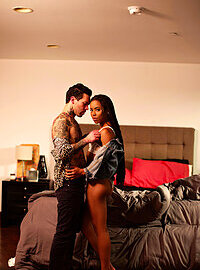 Pigtailed Asian slut with natural tits get properly fucked by tattooed dude