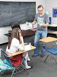 Ella Milano sucks teacher's cock and gets fucked in the classroom