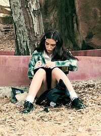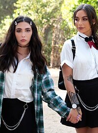 Movie description: "True Lesbian - Bad Reputation". Sarah (April Olsen) exits her home and says goodbye to her family inside. Dressed in a private school uniform with glasses and a backpack, Sarah is about to graduate at the top of her class. She may look innocent on the outside, but Sarah secretly longs for excitement ... And other women.S He slips in her headphones and puts on a punk song as she walks down the road to class. Meanwhile, Andy (Jane Wilde) sits at the base of a tree, legs spread as she dumps the contents of her school bag on the ground in front of her.A Ndy has failed senior year twice.S He rummages through her things, opening a notebook full of lesbian doodles.S He notices Sarah unknowingly pass by.A Ndy has been waiting all morning for Sarah.S Omething about Sarah has always made Andy curious.S He grabs her things and hurries to catch up.W Alking slowly behind Sarah so she can check her out for a moment, Andy takes in the beautiful student before gradually catching up and removing her headphones.S He introduces herself to Sarah, mentioning that they have homeroom together. The students walk along the road together, as Andy complains bitterly about their homeroom, how she's always getting suspended, how boring it is, and how their teacher should retire.S Oon, they fall into silence, as both women search for what to say next.F Inally, Sarah breaks the silence, asking Andy if she is ready for finals.A Ndy stops and studies the road ahead.A Ndy then enthusiastically suggests that they take a shortcut and veers off the path.S Arah stops and can't help but be amused at the spontaneity of her new friend.S He's pretty cute, when she isn't trying so hard.S He decides to follow. Sarah follows Andy down a path.S He's pretty sure they are going in the opposite direction of her school by now.B Ut she doesn't care.S He really likes Andy and wishes they could spend the whole day together.S Arah and Andy chat about their lives, their sexual tension building.E Ventually, Sarah asks Andy if she has a boyfriend.A Ndy responds with a chuckle, saying that guys aren't really her type.S Arah laughs back and nods her head awkwardly.S He can really feel the tension between them now.T Hey chat a little more, moving closer and closer to each other.F Inally, the tension boils over and they lean against a tree and kiss, their hands moving over their school uniforms. Andy may have a bad reputation, but Sarah is going to find out how GOOD that can feel sometimes...