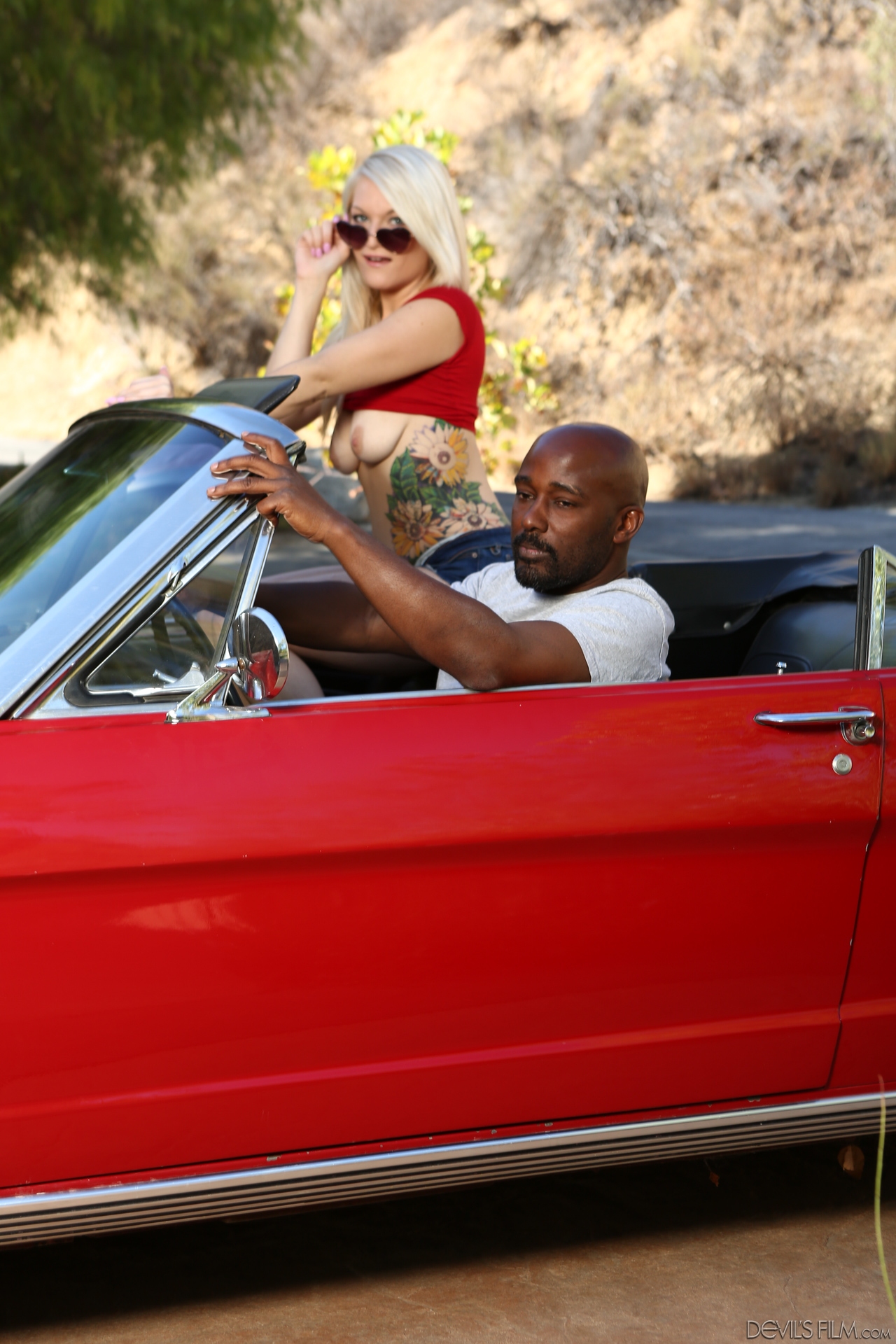 Blonde-haired stripper with big natural tits sucks and rides BBC