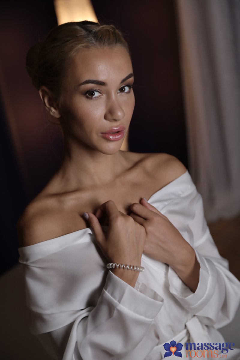 Photos description: "Horny blonde minx has orgasmic fuck". Katrin Tequila has been waiting for her massage for a while, and to say she's a bit annoyed would be an understatement. She came to the massage parlor to relax, but Max's tardiness is having the opposite effect. Max is a man of talent, however, and once the buff stud begins to drip oil onto Katrin's perky tits and naked body all her cares evaporate into a cloud of comfort. Feeling Max's strong hands on her soft skin, Katrin begins to fantasize: if his touch can be so smooth yet so hard, what would his cock feel like? The sensuality with which Max caresses her big ass drives Katrin wild, and when he stands at her head to better massage her tits, she can't help but stare at the outline of his thick, juicy member. Soon the two are entwined and covered in oil, bringing each other to beautiful orgasm!