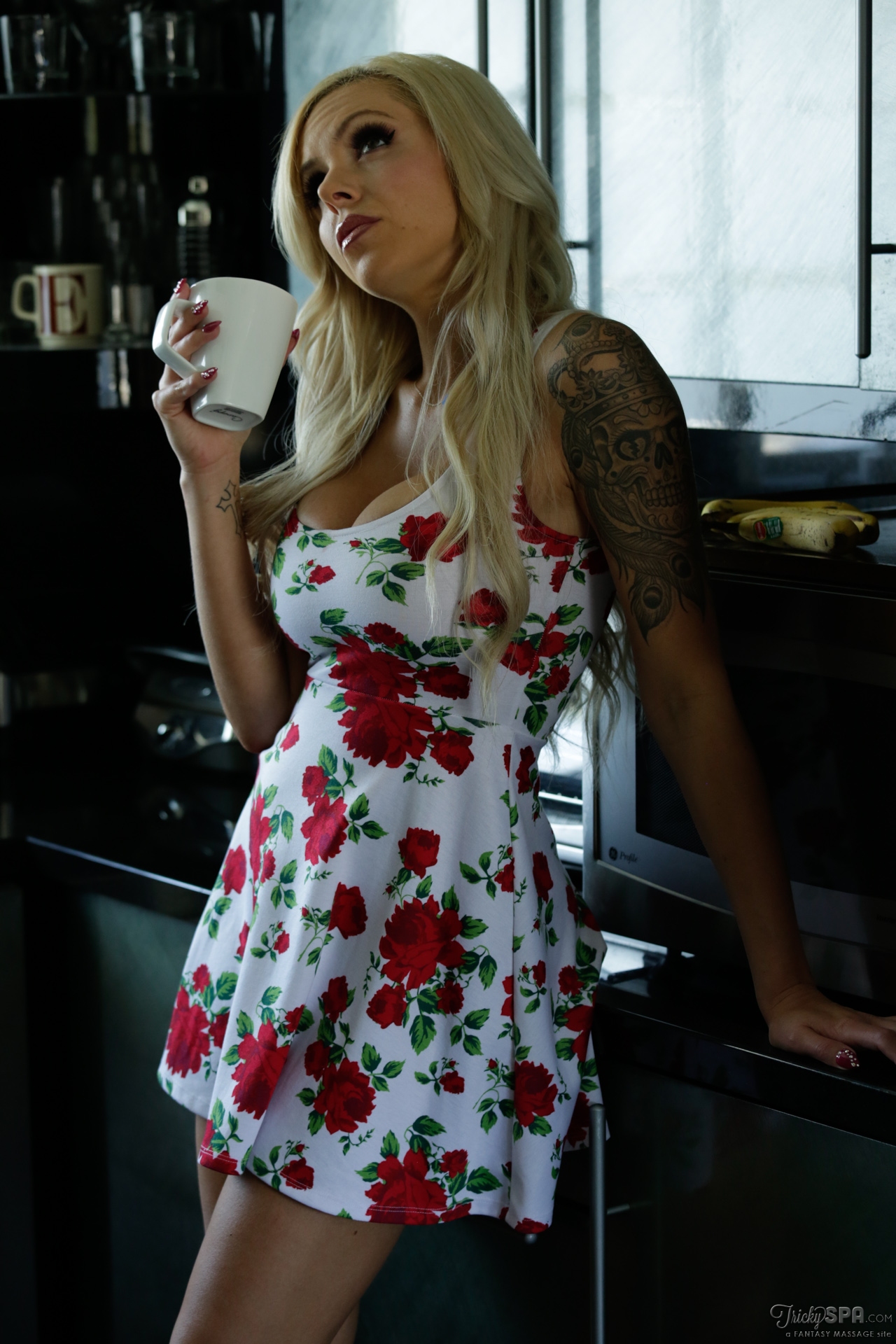 Photos description: "Fooling The Family: Part Two". Previously on TrickySpa, Eric came up with the master plan in seducing Nina Elle to not only suck and fuck him on camera, but milked his way to get her daughter to come in for a hands on lesson. Nina can't stop thinking about how wrong it was of her being taken advantage of... In a good way.T He lonely nymphomaniac wife needs more cock in her life, and masters her own ploy to seduce her step son, Jake Jace.S He has to know if he has a big cock that can please her every desire.S He pretends she's taking massage lessons.I T's the perfect deception.N Ina calls Jake into the living room, implies she desperately needs someone to practice her massage techniques on before her final test.H E takes the bait, allowing his mother to grope his back with her massive boobs, covered in oil.J Ake turns around, exposing his massive boner giving Nina the perfect chance to teach him about the birds and the bees.F Irst lesson; Jake's cock in his mother's mouth resulting in a huge load over her massive boobs!