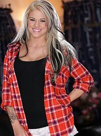 Blonde Skylar Vox with big natural tits gets a big cock in her wet pussy