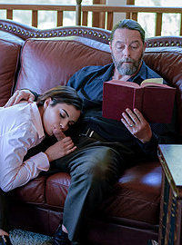 Liya Silver with big natural tits bounces on cock and gives blowjob