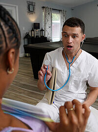 Photos description: "At Home Testing". Sarai Minx welcomed nurse Johnny into her house hoping to get a simple covid test. However, Johnny had other things in mind. Upon seeing her perfect tits, he decided to take a closer look. Eventually, he even persuaded her to take off her top. Fed up with his obvious attempt to hit on her she demanded her covid test. Sarai was told to close her eyes and open wide. This is when Johnny took the opportunity to shove his cock in her mouth. At first she was shocked and taken a back. However, her frown quickly turned into a smile when she saw his cock. She decided to take him to her bedroom for the real fun to begin. Her tight pussy took cock in several different positions making her cum multiple times. Finally she got what she most wanted, a huge load all over her face.