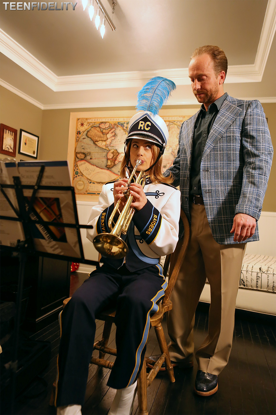 Photos description: "Band Practice 2". Kristen needs a lot of help if she's ever going to be a decent trumpet player. So she goes to Mr. Madison to get some tutoring. He promised low price but is even willing to let that go if she gives up that tight teen pussy! She accepts and sucks his hard dick before taking a proper pounding and getting her cunt filled with jizz.
