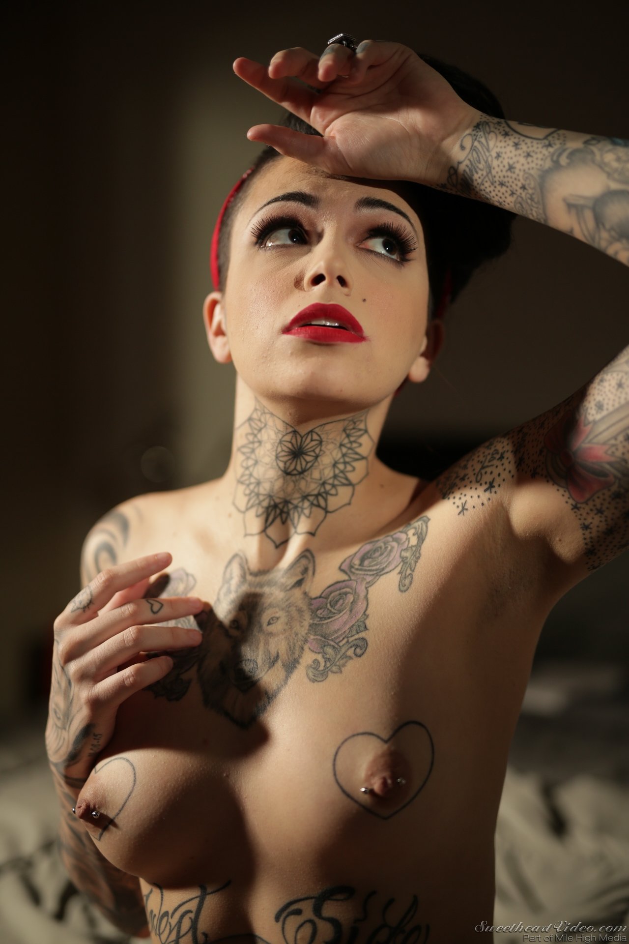 Photos description: "Pin Up Lesbian Scene 2". Blonde busty babe Kayden Kross gets into some mischief with tattooed, brunette pin up hottie Leigh Raven. Both Stunners make out using lots of tongue, and then quickly descend into mutual masturbating, rubbing each other's well_trimmed muffs until they cum. They are not finished yet, as they moved on into a hot, muff_diving session, eating each other out until they reach multiple orgasm.