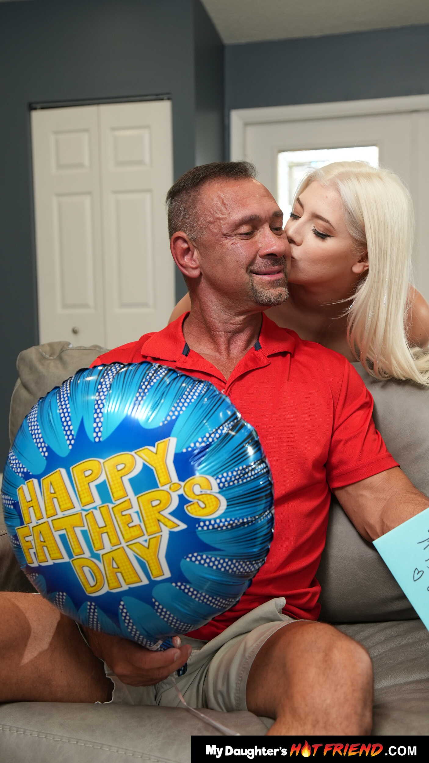 Photos description: "Gia OhMy gives her friend's dad a sexy Dad's Day surprise". Peter's wife and daughter areaway on a trip, on Father's Day of all days. Well his daughter's friend, Gia OhMy, hears about this and decides to stop by with a little gift for Peter. So Peter reads the card that Gia gave him which leads him to the bedroom where Gia has another present for him... Her sweet pussy and big ass.