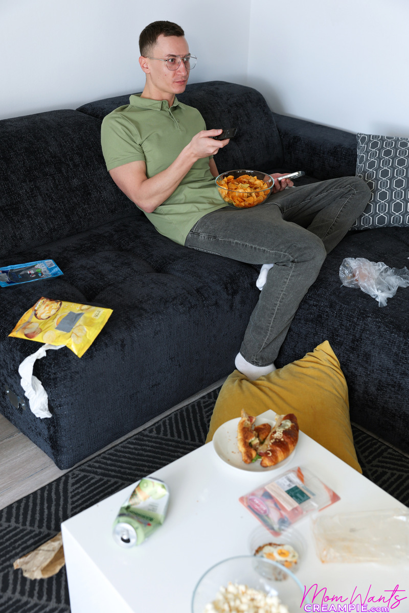 Photos description: "Cleaning Up For Stepmom - S7:E1". Brittany Bardot has just finished cleaning the kitchen. She walks into the living room to find that her stepson Charlie Dean has made a huge mess in the living room. He promises to clean it up, so Brittany goes to take a nap. When she wakes up, the mess is still there. Brittany stands and watches as Charlie finally begins cleaning up. When Charlie is finished, Brittany asks him to massage her shoulders to help resolve the stress he created. Charlie likes the way his stepmommy is ordering him around, and Brittany likes the way his hands feel massaging her tits. It's a fair deal, especially when Brittany makes it clear she wants everything Charlie has to give. He eats her pussy to seal the deal, then watches hungrily as Brittany sucks his dick. When Brittany mounts Charlie and rides him in cowgirl, he can't keep his hands from roaming back to those big boobies before he draws her down to suckle the nips. Then he spoons behind Brittany and rams back into her from behind. Dicking his stepmilf down in doggy gets Charlie so close to cumming, but he manages to wait until Brittany is on her back. She stares up at him as he creampies her, making the kind of mess Brittany can definitely handle.
